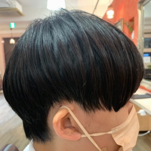 サイドも刈り上げてえりあしもしっかり切り込んでマッシュにさせて頂きました。