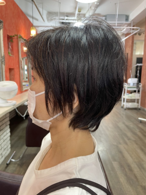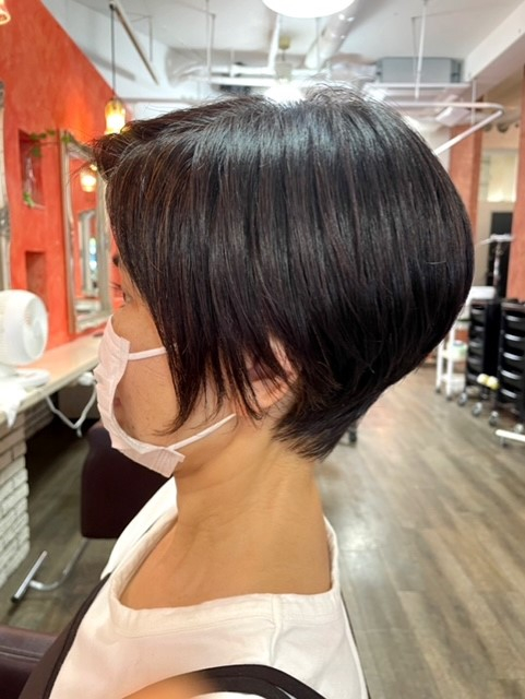 襟元とトップを少しだけ切り詰めてサイドに合わせる様に切りました。