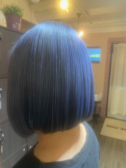 2回ブリーチをしてから淡いブルーを入れました。